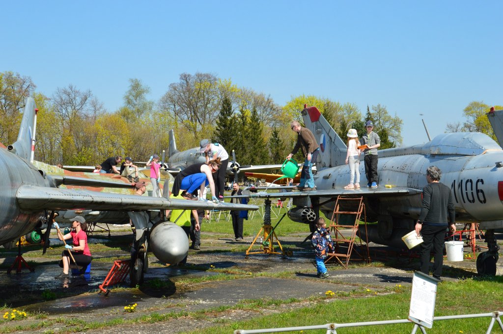 Chceme poděkovat všem nadšencům geocachingu, co nám v sobotu 22. dubna pomohli s údržbou muzea. Počasí přálo, a tak se s chutí pustili do umývání letadel, očisty plochy od plevele a úklidu kolem silnice.
